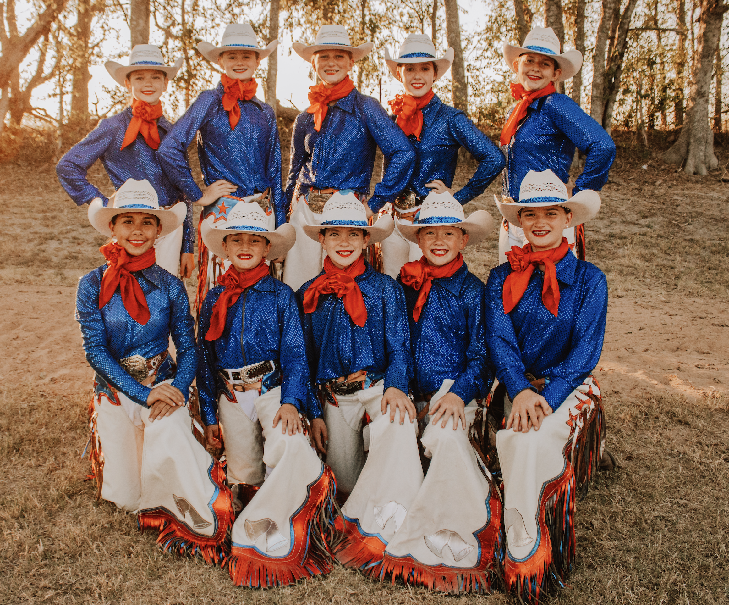 An equestrian drill team is a group of horses and riders performing choreographed maneuvers to music. Teams can perform at the 4H district and state show, Central Texas Drill Team contests, and local rodeos. Drill teams are intended to entertain, show sportsmanship, horsemanship, teamwork and dedication.
